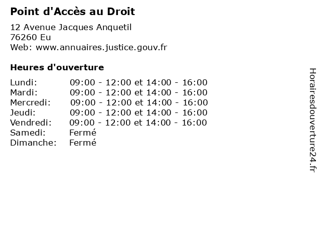 | Mardi | 09:00-12:00 et 14:00-16:00 |