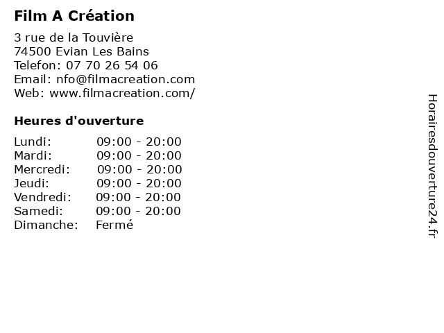 Horaires d'ouverture |
