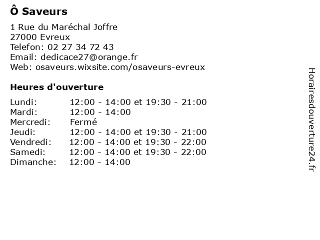 | Samedi | 12:00-14:00 et 19:30-22:00 |