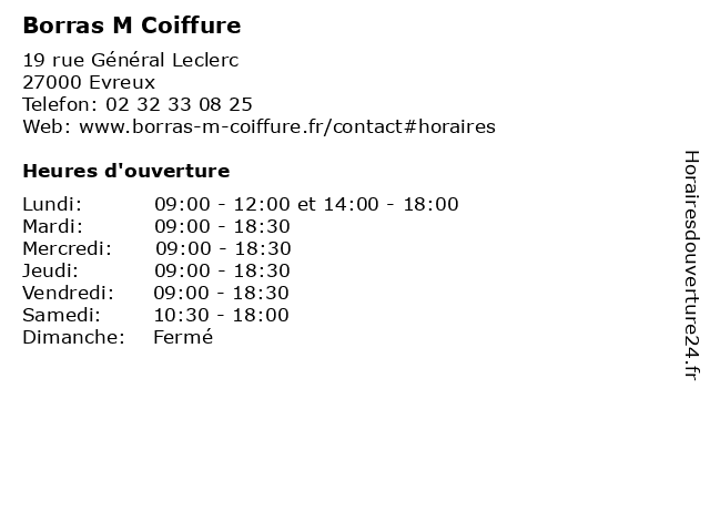 | Lundi | 09:00-12:00 et 14:00-18:00 |
