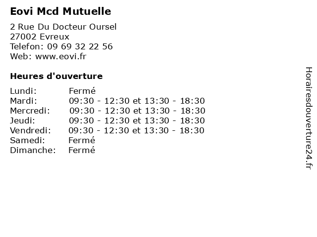 | Mardi | 09:30-12:30 et 13:30-18:30 |