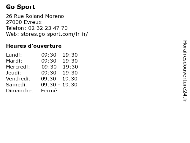 1 3 T Sport (Distance: 1,75 km) 522 Rue Gay Lussac, 27000 Evreux impression, logo, magasin, objets, publicitaire, sport 2 Sport 2000 (Distance: 17,72 km) 67 Rue François Mitterrand, 27190 Conches-en-Ouche 2000, accessoires, boutique, courses, montagne, pret à porter, sport, vêtements 3 Foot Locker (Distance: 0,16 km) 13 Route national, 27930 Guichainville foot, locker, magasin de vêtements de sport, magasin d’accessoires de mode, mode 4 Intersport (Distance: 0,71 km) - La Garenne de Melleville, 27930 Guichainville articles, chaussures, fitness, foot, football, intersport, musculation, natation, randonnée, running, ski, sport, sportif, sports, tennis, vélos, vêtements, équipement 5 Fitness Park (horaires salle) (Distance: 0,72 km) - Zac le long Buisson, 27000 Évreux club, fitness, horaires, musculation, park, salle, sport 6 Fitness Park (horaires accueil) (Distance: 0,72 km) - Zac le long Buisson, 27000 Évreux accueil, club, fitness, horaires, musculation, park, salle, sport |