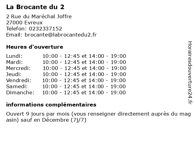 | Mardi | 10:00-12:45 et 14:00-19:00 |