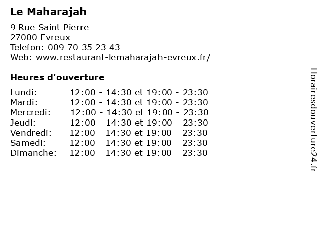 Lundi | 12:00-14:30 et 19:00-23:30 |