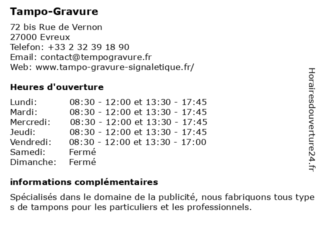 | Mardi | 08:30-12:00 et 13:30-17:45 |