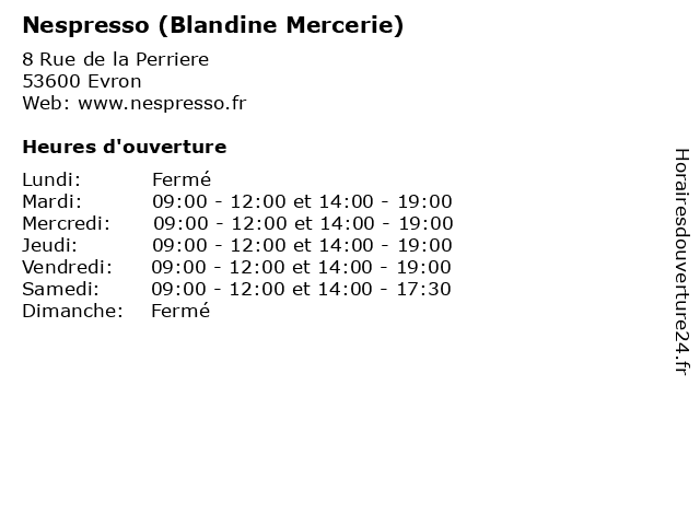 | Mercredi | 09:00-12:00 et 14:00-19:00 |