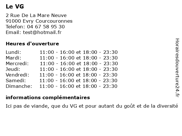 | Lundi | 11:00-16:00 et 18:00-23:30 |