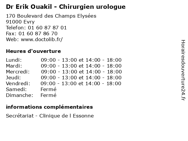 | Lundi | 09:00-13:00 et 14:00-18:00 |
