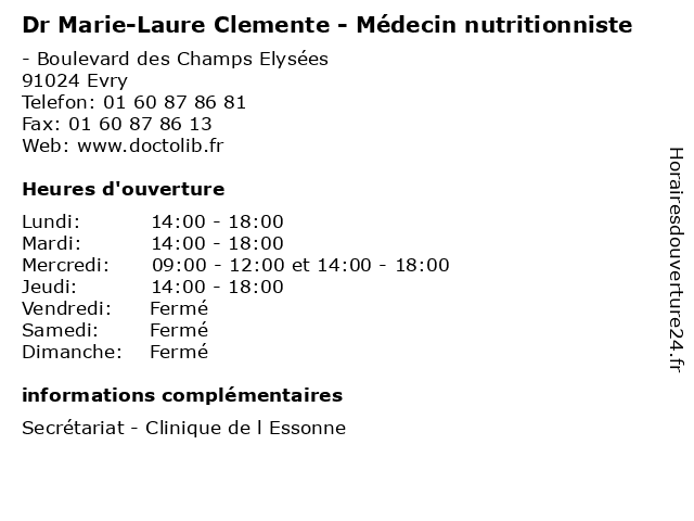 1 Dr Anne-Laure Breitel - Médecin généraliste (Distance: 0,48 km) 201 Rue Pierre et Maríe Curie, 91000 Évry-Courcouronnes anne, breitel, docteur, dr, generaliste, généraliste, laure, medecin, médecin, soins 2 Christine Laure (Distance: 0,52 km) 2 Boulevard de l'Europe, 91000 Évry-Courcouronnes accessoires, chaussures, christine, habillement, laure, mode, pret-a-porter, vetements 3 Centre De Dialyse Georges Laure (Distance: 3,88 km) 6 Boulevard Henri Barbusse, 91210 Draveil centre, de, dialyse, georges, laure 4 Dr Chloé Neury - Médecin nutritionniste (Distance: 4,89 km) 8 Rue Roger Clavier, 91700 Fleury-Mérogis centre, chloé, docteur, dr, generaliste, hospitalier, manhes, medical, médecin, neury, nutritionniste, soin 5 Dr Thanh Pham - Médecin nutritionniste (Distance: 4,89 km) 8 Rue Roger Clavier, 91700 Fleury-Mérogis centre, docteur, dr, generaliste, hospitalier, manhes, medical, médecin, nutritionniste, pham, soin, thanh 6 Dr Jocelyne Raison - Médecin nutritionniste (Distance: 4,89 km) 8 Rue Roger Clavier, 91700 Fleury-Mérogis centre, docteur, dr, generaliste, hospitalier, jocelyne, manhes, medical, médecin, nutritionniste, raison, soin |