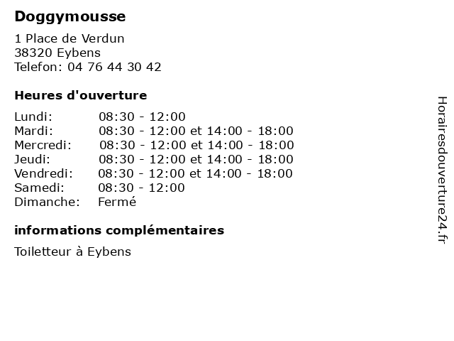 | Mardi | 08:30-12:00 et 14:00-18:00 |