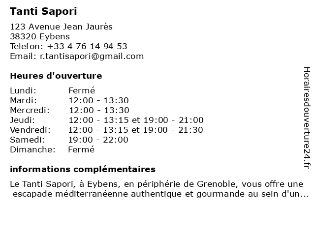 | Lundi | Fermé |