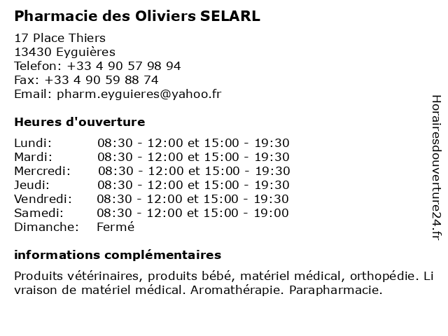 | Vendredi | 08:30-12:00 et 15:00-19:30 |