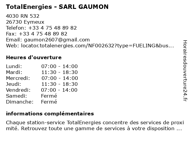 Termes de recherche pour TotalEnergies - SARL GAUMON:sarl, total, gas station, station service, gaumon, tankstelle, totalenergies |