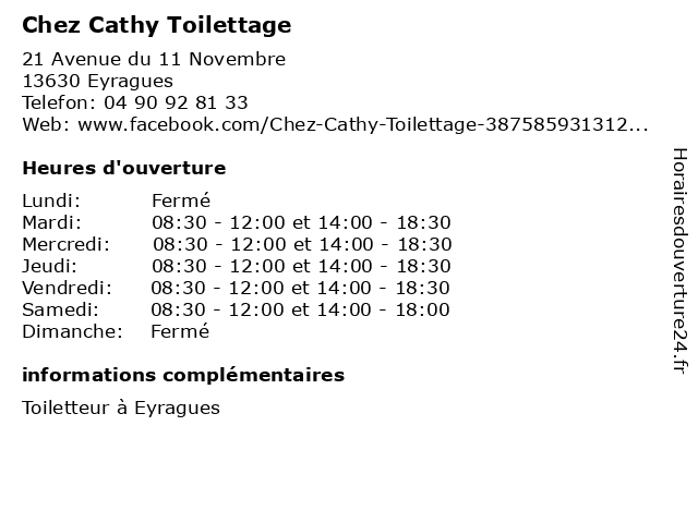 | Mardi | 08:30-12:00 et 14:00-18:30 |