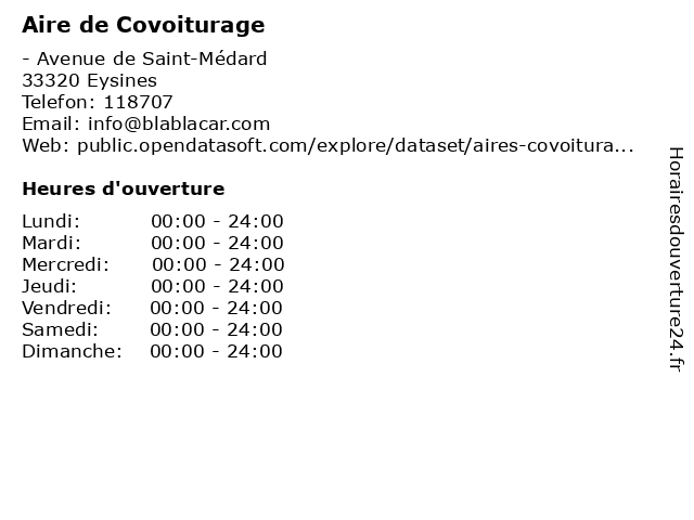 1 Aire de Covoiturage (Distance: 1,38 km) 5 Avenue du Taillan-Médoc, 33320 Eysines aire, covoiturage, de, partager, trajets 2 Aire de Covoiturage (Distance: 2,41 km) - Rue des Treytins, 33320 Eysines aire, covoiturage, de, partager, trajets 3 Aire de Covoiturage (Distance: 4,37 km) - Avenue John Fitzgerald Kennedy, 33700 Mérignac aire, covoiturage, de, partager, trajets 4 Aire de Covoiturage (Distance: 5,45 km) - Route départementale D1, 33320 Le Taillan-Médoc aire, covoiturage, de, partager, trajets 5 Aire de Covoiturage (Distance: 5,75 km) - Route de Feydit, 33160 Saint-Médard-En-Jalles aire, covoiturage, de, partager, trajets 6 Aire de Covoiturage (Distance: 6,40 km) - Rue Jean Duperrier, 33160 Saint-Médard-En-Jalles aire, covoiturage, de, partager, trajets |