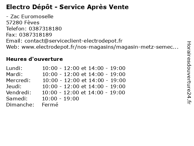 | Mercredi | 10:00-12:00 et 14:00-19:00 |