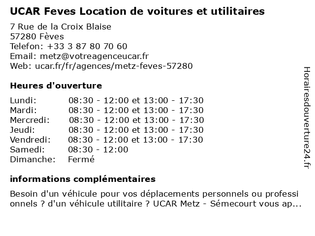 | Lundi | 08:30-12:00 et 13:00-17:30 |