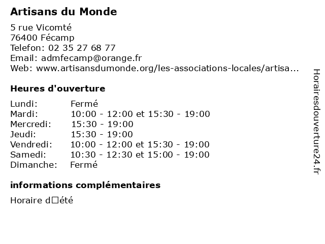 | Samedi | 10:30-12:30 et 15:00-19:00 |