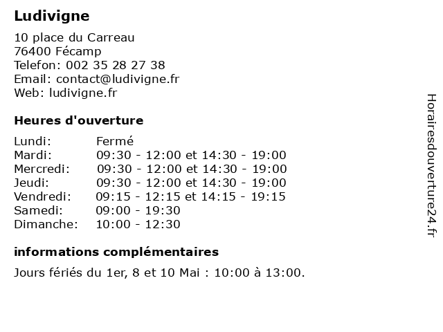 | Mardi | 09:30-12:00 et 14:30-19:00 |