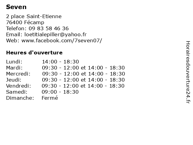 | Vendredi | 09:30-12:00 et 14:00-18:30 |