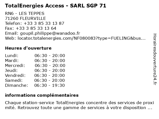 Termes de recherche pour TotalEnergies Access - SARL SGP 71:access, sarl, total, 71, gas station, station service, sgp, tankstelle, totalenergies |