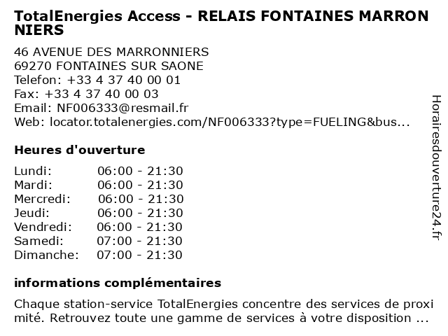 Termes de recherche pour TotalEnergies Access - RELAIS FONTAINES MARRONNIERS:relais, access, total, fontaines, marronniers, gas station, station service, tankstelle, totalenergies |