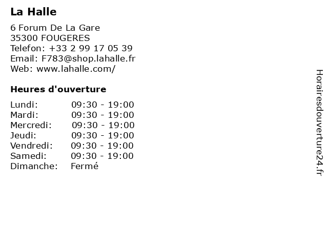 1 La Halle (Distance: 0,15 km) n/a Rue de Sévigné, 35300 Fougères bags, child, clothing, halle, la, lingerie, man, shoes, woman 2 Bréal (Distance: 2,91 km) Lieu-dit La Pilais, 35133 Lécousse blazer femme, boutique vêtement, breal, bréal, cardignan femme, chaussures femme, gilet femme, jean femme, magasin vêtement, manteau femme, mode femme, pull femme, robe femme, sac femme, t-shirt femme, tailleur femme, top femme, vêtement femme 3 Territoire d'Homme (Distance: 19,88 km) 1 place Renault Molière, 53500 Ernee accessories, cost, d'homme, jacket, men, shirt, shoes, sweater, territoire, tie, women 4 BRICE (Distance: 20,27 km) n/a les Loges, 53940 SAINT BERTHEVIN accessories, brice, coat, costume, jacket, polo, shirt, sweater, t-shirt 5 BRICE (Distance: 25,18 km) 7 rue de la Liberté, 35000 VITRÉ accessories, brice, coat, costume, jacket, polo, shirt, sweater, t-shirt 6 Territoire d'Homme (Distance: 26,45 km) n/a Place du Bassin, 50600 Saint Hilaire du Harcouet accessories, cost, d'homme, jacket, men, shirt, shoes, sweater, territoire, tie, women |