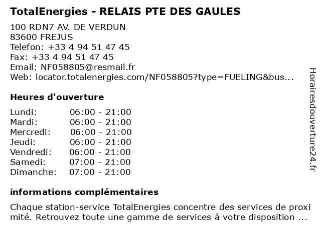 | Samedi | 07:00-21:00 |