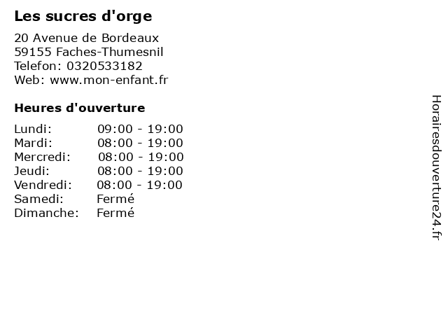 1 Orge & Houblon - Cave à Bières (Distance: 4,47 km) 54 rue de l'Alcazar, 59000 Lille bières, bières pression, bouteilles, cave, caves à bières, charcuterie, fromages, houblon, orge 2 Crèche People and Baby - Les Sucres d'Orge (Distance: 6,51 km) 52 Rue Neuve, 59160 Lomme and, baby, crèche, crèches, d'orge, garde d'enfants, les, les services parentalité, neuve, people, projet social, projet éducatif, rue, sucres 3 Halte Garderie "Sucre D'Orge" (Distance: 17,58 km) 41 Rue de la Bourgogne, 59200 Tourcoing "sucre, caregivers houses, child care, d'orge", family home, garderie, halte, home care, kindergartens, micro-nurseries, parental home 4 Instants Sucrés - Boulangerie Pâtisserie (Distance: 3,37 km) 24 Rue Faidherbe, 59260 Lezennes boulangerie, boutique, desserts, instants, patisserie, pâtisserie, salon, sucres, sucrés, thé 5 Orge & Houblon - Cave à Bières (Distance: 25,23 km) 25 rue de la Cloris, 59500 Douai bières, bières pression, bouteilles, cave, caves à bières, charcuterie, fromages, houblon, orge 6 Orge & Houblon (Distance: 25,78 km) 118 Boulevard Emile Basly, 62300 Lens bieres, caves, houblon, orge, restauration, tapas, vins |
