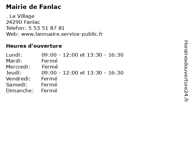 Termes de recherche pour Mairie de Fanlac:de, administration, mairie, assoc public, fanlac |