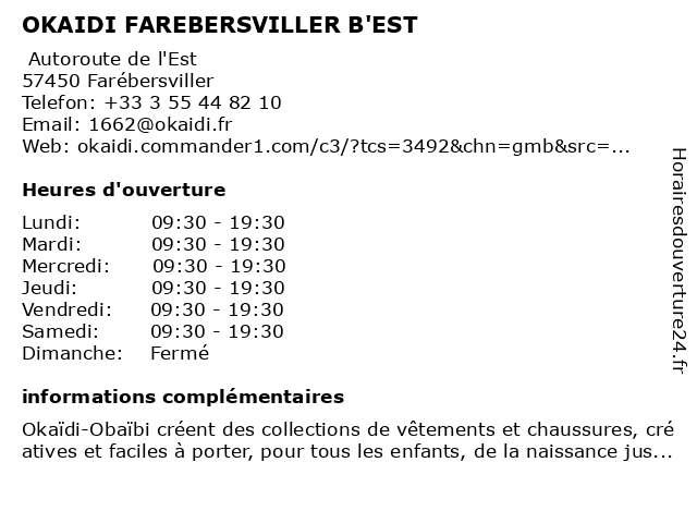 1 Darjeeling Farebersviller B'Est - Définitivement Fermé (Distance: 0,02 km) 61 Avenue saint, 57450 Farebersviller b'est, darjeeling, définitivement, farebersviller, fermé, magasin de maillots de bain, magasin de vêtements de maternité, magasin de vêtements grandes tailles, magasin de vêtements pour femmes 2 SEPHORA FAREBERSVILLER (Distance: 0,08 km) 63 Avenue Saint-Jean, 57450 Farébersviller beauté, carte cadeau, coffret, farebersviller, maquillage, parfum, parfumerie, sephora, soin 3 Hunkemöller B'EST Farébersviller (Distance: 0,49 km) 61 Avenue saint-jean, 57450 Farébersviller b'est, farébersviller, hunkemöller, magasin de maillots de bain, magasin de vêtements pour femmes, mode 4 Centre De Sante Carmi Est - Médecine générale (secrétariat ) (Distance: 4,94 km) 2 Avenue Émile Huchet, 57800 Freyming merlabach carmi, centre, consultation, de, docteur, est, générale, médecine, sante, santé, secrétariat 5 Green Acres (Moselle Est Immo) (Distance: 5,59 km) 27 Rue De La Carrière, 57600 Morsbach acres, apartment rentals, est, green, home sales, immo, moselle, real estate 6 Chèvrerie de l'Est (Distance: 6,48 km) 18 rue Saint Pierre, 57980 Diebling chèvre, chèvrerie, de, de l'est, diebling, ferme, fromages, l'est, élevage |