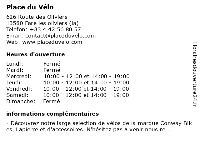 | Samedi | 10:00-12:00 et 14:00-19:00 |