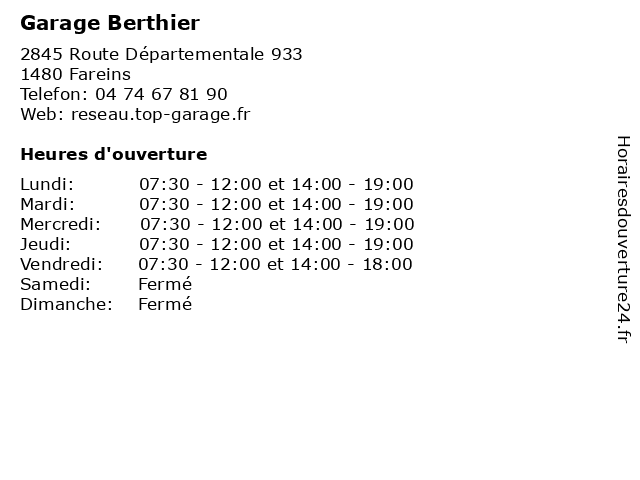 | Lundi | 07:30-12:00 et 14:00-19:00 |
