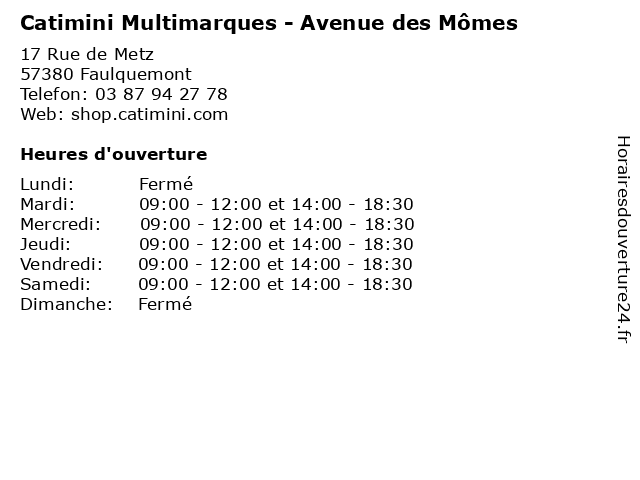 | Samedi | 09:00-12:00 et 14:00-18:30 |