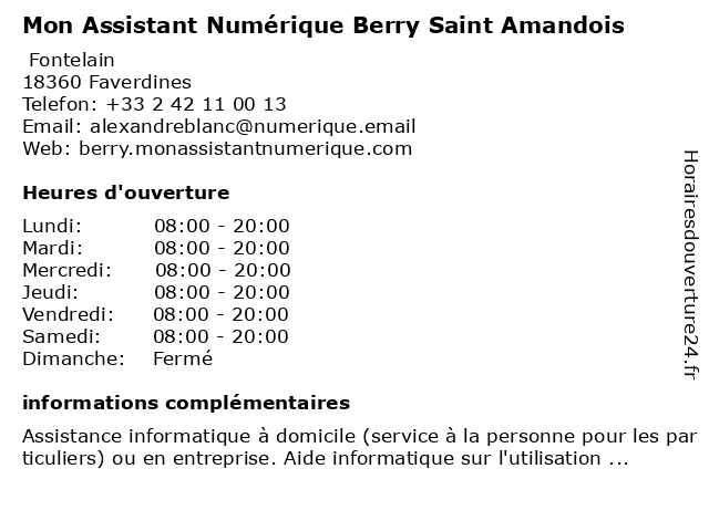 | Samedi | 08:00-20:00 |