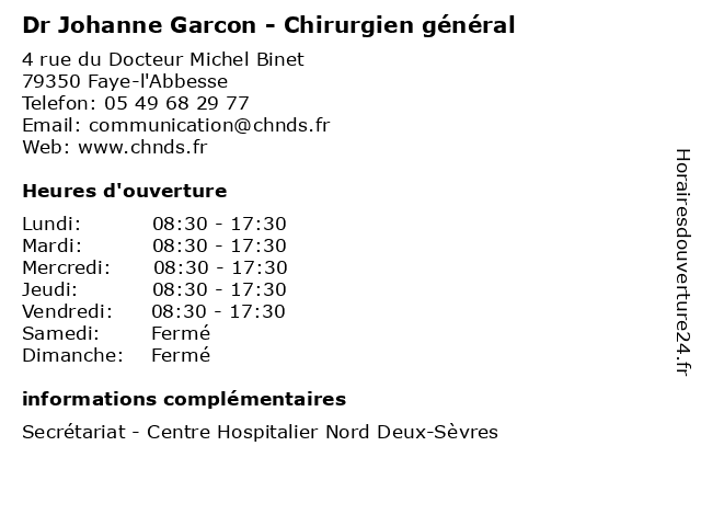 1 Dr Georges El Khourge - Chirurgien général (Distance: 0,00 km) 4 rue du Docteur Michel Binet, 79350 Faye-l'Abbesse chirurgien, consultation, docteur, dr, el, georges, général, khourge, med, médecin, médecine, traitement 2 Dr Dominique Margerit - Chirurgien général (Distance: 0,00 km) 4 rue du Docteur Michel Binet, 79350 Faye-l'Abbesse chirurgien, consultation, docteur, dominique, dr, général, margerit, med, médecin, médecine, traitement 3 Dr Philippe Videcoq - Chirurgien général (Distance: 0,00 km) 4 rue du Docteur Michel Binet, 79350 Faye-l'Abbesse chirurgien, consultation, docteur, dr, général, med, médecin, médecine, philippe, traitement, videcoq 5 Dr Adélaïde Garcon - Médecin généraliste (Distance: 47,62 km) 17 Rue Saint-Etienne, 85500 Les Herbiers adélaïde, docteur, dr, garcon, generaliste, généraliste, medical, médecin, soin 6 Kids Around (Distance: 48,07 km) . Route de la Roche sur Yon, 85500 Les Herbiers ado, around, boutique enfants, bébé, fille, garcon, kids |