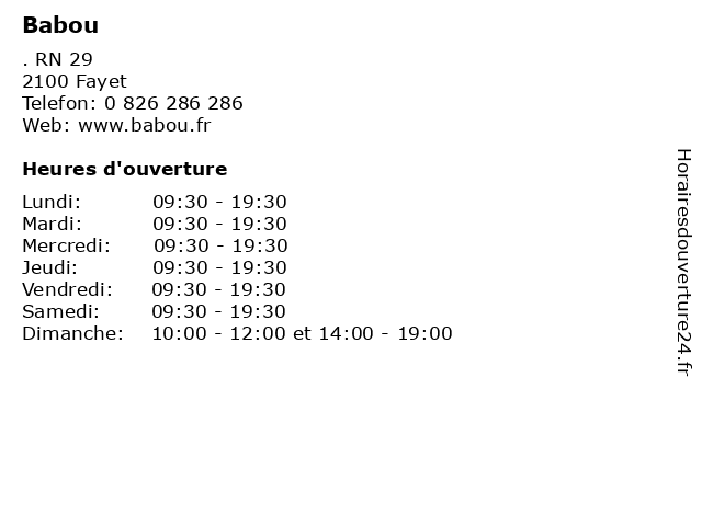 | Samedi | 09:30-19:30 |