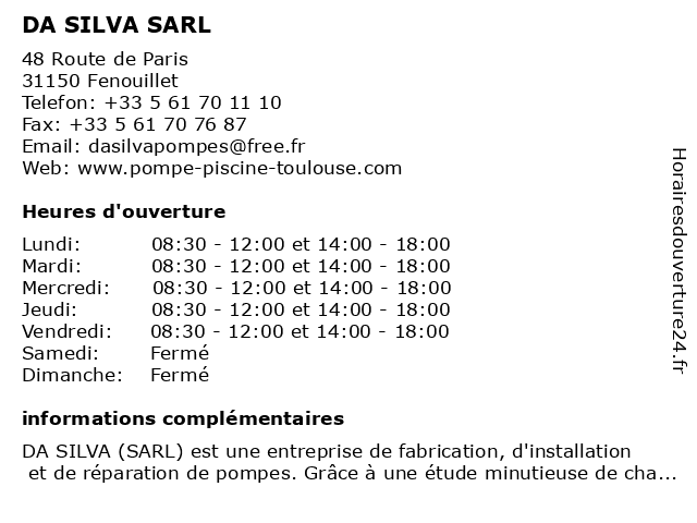 | Lundi | 08:30-12:00 et 14:00-18:00 |