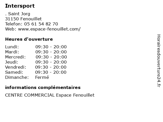1 Intersport (Distance: 0,96 km) 5004 Rue des Usines, 31150 Fenouillet chaussures, intersport, loisirs, magasins, paniers, sport 2 Intersport (Distance: 1,71 km) 5004 Rue des Usines, 31150 Fenouillet beaute, chaussures, decoration, intersport, mode enfants, mode femme, mode homme, restauration, service, sport 3 Intersport (Distance: 2,47 km) . Route Nationale 20, 31150 Fenouillet cafe, chaussures, enfants, homme, intersport, mode femme, restaurant, services 4 Intersport (Distance: 2,47 km) . Route Nationale 20, 31150 Fenouillet cafe, chaussures, enfants, homme, intersport, mode femme, restaurant, services 5 Intersport (Distance: 6,21 km) 2 impasse Emile Zola, 31700 Blagnac accessoires, intersport, magasin, prêt à porter, running, sport 6 Intersport (Distance: 8,35 km) n/a Impasse du Clos du Loup, 31180 Rouffiac Tolosan beaute, chaussures, decoration, intersport, mode enfants, mode femme, mode homme, restauration, service, sport |