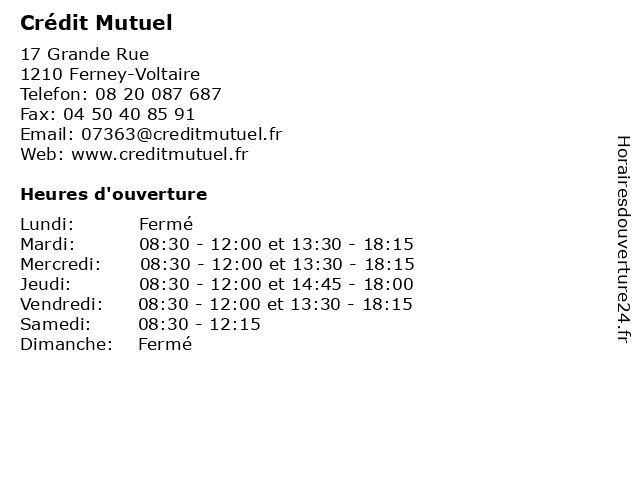 1 Crédit Mutuel (Distance: 0,61 km) 17 Grand Rue, 01210 Ferney Voltaire compagnie de téléphone, crédit, mutuel, organisme d'assurance 2 Crédit Mutuel (Distance: 7,44 km) 23 Rue de Genève, 01630 Saint-Genis Pouilly agence, assurance, bancaire, banque, crédit, mutuel 3 Crédit Mutuel (Distance: 9,91 km) - Rue le Tetras, 01170 Gex agence, assurance, bancaire, banque, crédit, mutuel 4 Crédit Mutuel (Distance: 11,18 km) 2 Rue Des Voirons, 74100 Annemasse compagnie de téléphone, crédit, mutuel, organisme d'assurance 5 Crédit Mutuel (Distance: 11,24 km) 203 Avenue de Genève, 01220 Divonne-les-Bains agence, assurance, bancaire, banque, crédit, mutuel 6 Crédit Mutuel (Distance: 11,46 km) 8 Rue Charles Dupraz, 74100 Annemasse compagnie de téléphone, crédit, mutuel, organisme d'assurance |