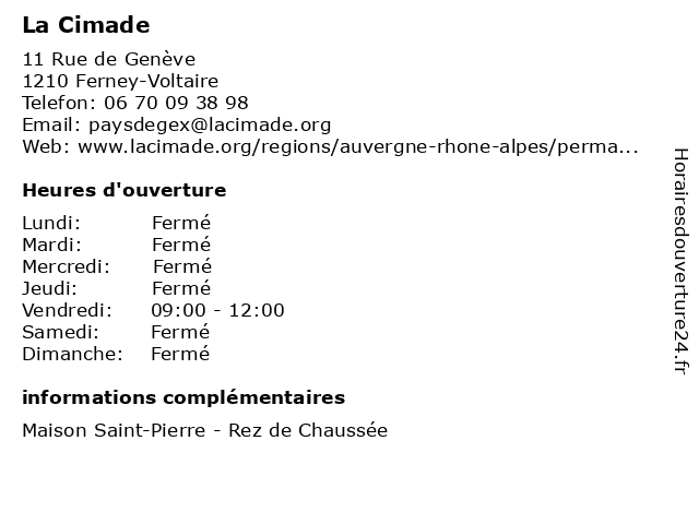 1 La Cimade (Distance: 6,58 km) 28 Rue de Pouilly, 01630 Saint-Genis-Pouilly association, cimade, hébergements, la, victimes 2 Prêt à Partir (Distance: 12,11 km) 3 rue Pasteur, 74100 Annemasse agence, hébergements, hôtels, partir, prêt, vacances, voyages 3 La Cimade (Distance: 27,24 km) 71 Rue de la République, 01200 Valserhône association, cimade, hébergements, la, victimes 4 Bureau d'aide aux victimes - Tribunal de Grande Instance (Distance: 30,04 km) s/n quai du parquet, 74136 Bonneville administration, aux, bonneville, bureau, d'aide, de, du, grande, instance, publics, services, tribunal, victimes 5 Bureau d'aide aux victimes - Tribunal de Grande Instance (Distance: 30,92 km) 10 rue de l'Hotel-Dieu, 74200 Thonon les Bains administration, aux, bains, bureau, d'aide, de, du, grande, instance, les, organismes, publics, services, thonon, tribunal, victimes 6 Office national des anciens combattants et victimes de guerre (ONACVG) (Distance: 39,13 km) 7 Rue Dupanloup, 74040 Annecy administration, anciens, assoc, combattants, de, des, et, guerre, national, office, onacvg, services, services publics, victimes |