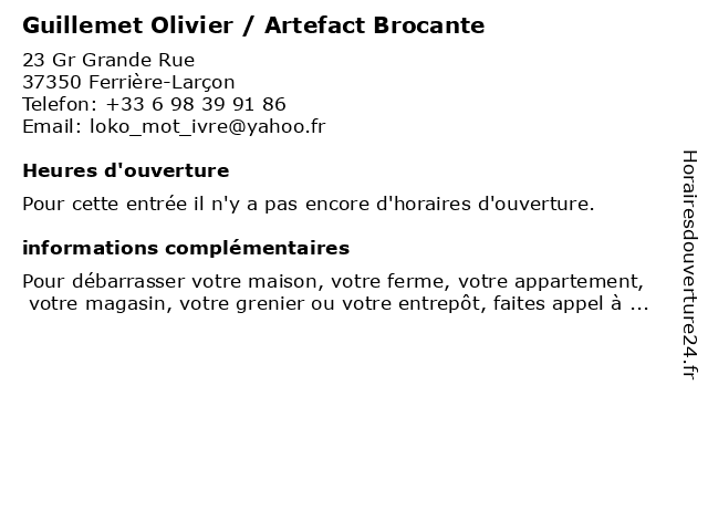 | Appeler Guillemet Olivier / Artefact Brocante | |
