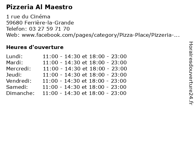 | Lundi | 11:00-14:30 et 18:00-23:00 |