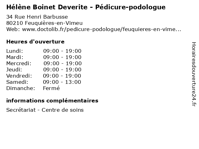 1 Boinet Chantal (Distance: 4,57 km) 55 Rue Du General Leclerc, 80130 Friville Escarbotin boinet, chantal, restaurants 2 Charlotte Bacquet - Podologue-posturologue (Distance: 5,13 km) 8 voie Charles Saint-Germain, 80520 Woincourt bacquet, charlotte, consultation, docteur, med, médecin, podologue, posturologue, traitement 3 Hélène Cahon - Hypnothérapeute (Distance: 7,61 km) 32 Grande Rue, 80130 Béthencourt-sur-Mer cahon, certifiée, en, ericksonienne, hypnose, hypnotherapeute, hypnothérapeute, hélène, therapie 4 Boinet Matériaux (Distance: 8,62 km) 4 Impasse de la Fontaine d'Arcy, 80770 Beauchamps boinet, matériaux 5 Sandra Jouet - Pédicure-Podologue (Distance: 9,47 km) 3 Rue Charles de Gaulle, 80220 Gamaches jouet, pied, podologie, podologue, pédicure, romain, sandra, santé 6 Loic Alexandre - Pédicure-Podologue (Distance: 9,47 km) 3 Rue Charles de Gaulle, 80220 Gamaches alexandre, loic, pied, podologie, podologue, pédicure, romain, santé |