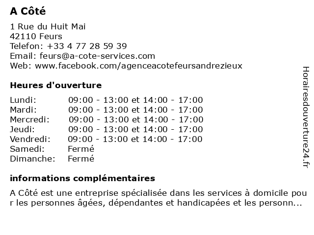 | Lundi | 09:00-13:00 et 14:00-17:00 |