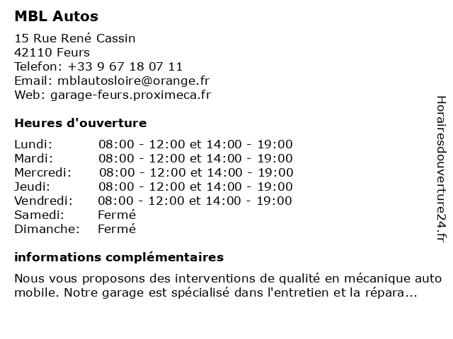 | Lundi | 08:00-12:00 et 14:00-19:00 |