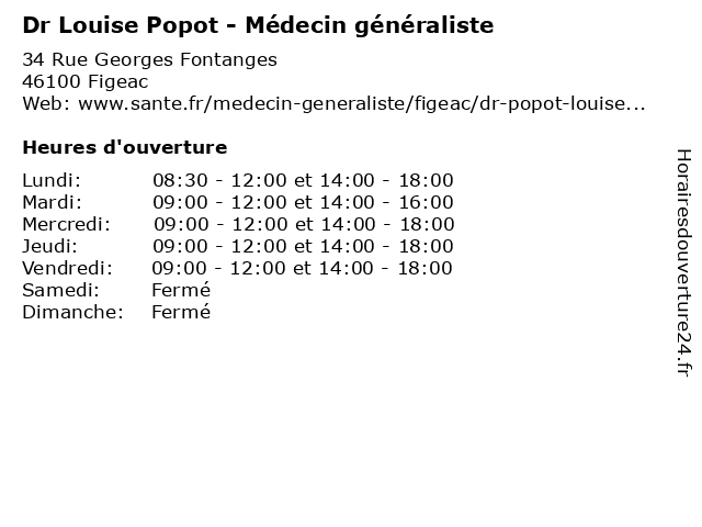 | Lundi | 08:30-12:00 et 14:00-18:00 |