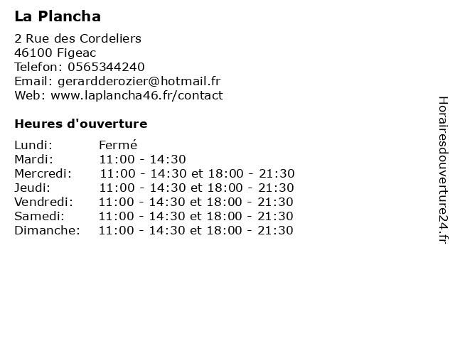 | Samedi | 11:00-14:30 et 18:00-21:30 |