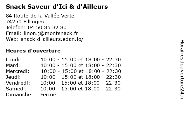 | Mardi | 10:00-15:00 et 18:00-22:30 |