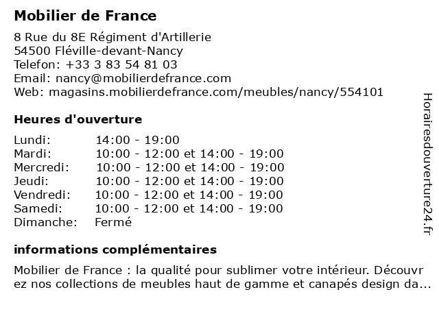 | Samedi | 10:00-12:00 et 14:00-19:00 |